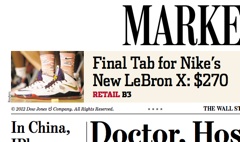 Nike has decided $300 is a bit too expensive for a pair of LeBron X basketball shoes, reports the Wall Street Journal this morning—$270 is a bit more reasonable. The price was cut by $30 after some people called Nike “insensitive for raising sneaker prices at a time when many consumers were financially stretched during the back-to-school shopping season.” A less expensive pair without the tracking sensors will be sold for $180.