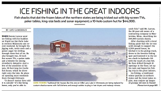 The ice-fishing shack is getting an upgrade. The Wall Street Journal says homemade ice-fishing shacks in the northern states are being replaced with custom-built houses filled with amenities including big screen televisions with satellite dishes, kitchens and bathrooms with heated showers. For fishing, they have underwater cameras and sonar systems.