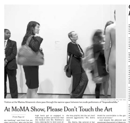 Visitors to MOMA’s new exhibit are having a hard time not touching the art on display says the New York Times. That’s because the exhibit features nude models. Besides inappropriate touching, the performers say the other downfalls to their job include “more erections across the back of my hand than I can count” and the amount of high heels in such close proximity to their uncovered toes.