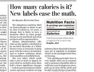 Food nutrition labels are getting their first makeover in 20 years, with a new emphasis on calories and sugar content. The Washington Post says the change is likely to have a dramatic effect on what products people choose to eat and drink. Major changes include the calorie count in a larger font and more realistic serving sizes.
