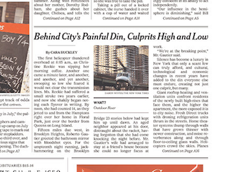 It comes from up high and down low. The New York Times says the “city’s painful din” is due to a compendium of factors, including the fact that building permits are the highest they’ve been in 5 years and many construction crews are permitted to work through the night. Add that to your neighbor’s home theater system seeping through the thinner walls of new construction and the refrigerated Fresh Direct trucks roaming the streets and it’s a wonder anyone sleeps at all.