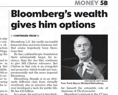 What will New York City Mayor Mike Bloomberg do after his three terms are up in 2013? Will he buy the Financial Times, the Economist and the New York Times and run them as a “quasi public interest” media empire? USA Today columnist Michael Wolff says the possibility, which has only been hinted at, would “replace the public stature, the wide influence and the unique independence he’s had running the city.”