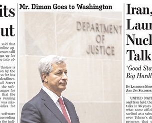 The Wall Street Journal editorial page offers a strong defense of J.P. Morgan Chase CEO, Jamie Dimon. The paper says regulators are backing up a truck to J.P. Morgan’s vault and trying to load it up, as the company considers an $11 billion settlement. The Journal says Dimon is being targeted by the administration for refusing to toe the line, adding that he not only didn’t create the mortgage crisis but helped end it.