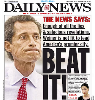 Both the New York Daily News and the New York Times both say Anthony Weiner needs to resign. This comes a day after it was revealed that the mayoral hopeful was still sending explicit messages in 2012, a year after he left the House to deal with his…issues. Despite the revelation, Weiner says he will continue his run. The Times says “to those who know his arrogance and have grown tired of the tawdry saga he has dragged the city into, this is not surprising.”
