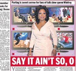 It’s I Love Oprah week. But at least one person isn’t joining in on the celebrations. Boston Globe columnist Alex Beam has no love for the “portly little pepperpot of daytime broadcasting fame.” He writes: “I prefer my fake empathy straight, no chaser. If I want to watch a rich person affecting concern for the Little People I’ll tune into Jerry Springer.” The New York Daily News disagrees, writing that “everything she does feels warm and personal.”