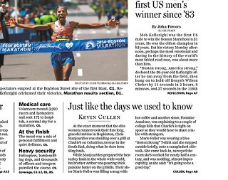 Boston Globe columnist Kevin Cullen says all along the marathon route yesterday, the overwhelming feeling was a welcome sense of normalcy. Cullen says it was fitting that Meb Keflezighia, a refugee from Eritrea, won the race. Cullen says unlike the brothers accused of bombing last year’s marathon, Keflezighia embraced the opportunities offered by America.