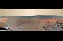 If you can’t get to Mars anytime soon, this picture is a pretty good substitute says the New York Daily News. NASA just released the panoramic shot, taken by the rover Opportunity. In the photo you can see freshly-made rover tracks, next to a crater made billions of years ago.
