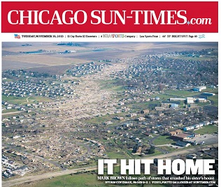 Chicago Sun-Times reporter Mark Brown details the devastation caused by a tornado that ripped through his hometown of Washington, Illinois Sunday. His sister’s house was destroyed by the storm. He said hearing the report that a tornado hit his hometown took the air right out of him.