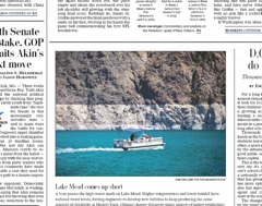 There’s a scary climate change photo on the front page of the Washington Post this morning showing just how much the water on Lake Mead has fallen from historic levels. The top of that white band shows the traditional water line.
