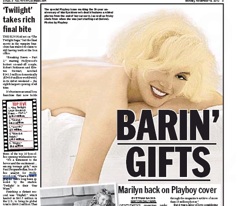 Marilyn Monroe is back, “barin’ gifts” this holiday season, reports the New York Daily News. In honor of the 50th anniversary of Monroe’s death, Playboy is celebrating the ultimate pinup and its first cover model with—what else—a spread of nude photos spanning her career in its December issue. Would she have liked her naked memorial? Hugh Hefner seems to think so. Said the Playboy founder: “She was most in control when she was in the nude.”