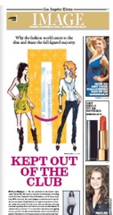 Given the obesity epidemic in this country, I’ve always thought the fashion industry’s dislike of plus-sized models was—especially from a business standpoint—irrational. But the LA Times says making plus-sized clothing requires more than just a bigger pattern. Different techniques, fit models, even fabrics have to be used. Up to size 10, patterns can be adjusted easily because the “body’s proportions expand in a more universal manner in the lower sizes.” But “boxy, shapeless styles” emerge as sizes increase, in part because most design schools don’t teach students how to create clothing for a plus-sized audience.