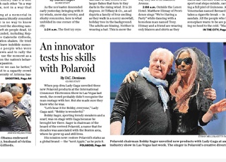 There’s an interesting Boston Globe article this morning about Polaroid’s bid to “become the next Apple.” You’ll remember that the company signed Lady Gaga as a creative director last year. She was on hand at the CES in Las Vegas to debut some new Polaroid products, like a pair of sunglasses that take digital photos. According to Bobby Sager, Polaroid’s Chairman, that’s just the beginning. He says “90 percent of the products Polaroid will offer in the next few years have yet to be invented.”