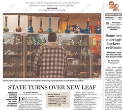 Papers in Washington and Colorado react to the brand-new legislation to legalize marijuana this morning. The Spokane Spokesman-Review says it’s unclear exactly how to proceed, given that pot is still illegal under federal law. Though the financial potential of legalized marijuana sales has some cautiously excited, the legislation has created a quandary for law enforcement and for human resource departments at companies that require a drug test—it is, after all, their “first dance with Mary Jane.”