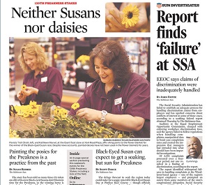 It’s a tale so widely believed that it’s even in the official media guide. The black-eyed Susan, doesn’t bloom in time for the Preakness. So florists dab black paint in the center of thousands of yellow daisies to make them look like Maryland’s state flower. The Baltimore Sun reveals that for at least a decade, the blanket of flowers draped over the Preakness winner has been made of neither Susans nor daisies, but rather the viking pom, which has a brown center and is apparently close enough to black that no one’s noticed the difference.