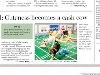 If watching large men tackle each other isn’t your idea of a rocking Sunday, the Seattle Times says you might want to tune into Animal Planet this weekend. Starting around 3 p.m. 63 puppies will vie for glory in the channel’s 9th annual Puppy Bowl. The event has become something of a cash cow for the channel, which says it attracted 8.7 unique viewers last year. And this year’s cheerleaders? Hedgehogs.