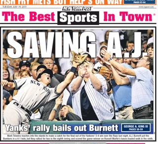 Yankees’ Mark Teixeira saves a ball…and a fan’s face. New York Post.