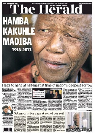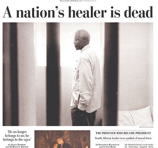 Reaction is pouring in from around the world on the death of Nelson Mandela. His face graces the front pages of nearly every major newspapers in the U.S. The Washington Post declares “A Nation’s Healer is Dead.” The Post says Mandela understood he might never see the South Africa he envisioned when he left prison - but he sought out that vision until his final days.  Here’s a roundup of the front pages from a few of the South African dailies.