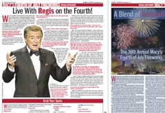 There’s a Macy’s Fireworks preview in the New York Daily News this morning. On page 2, the paper asks host Regis Philbin if he thinks I should replace him on Live. First he compliments my newspaper-holding abilities, and then he gives this answer: “I have seen him once or twice pinch-hitting for me. I think he’s a good broadcaster and one of the gang that they should choose from.”