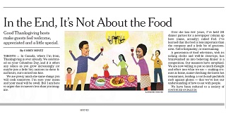 As we prepare to make our Thanksgiving feasts for family and friends, many of us are stressing out over putting together a memorable meal. But Corey Mintz, a writer who is paid to host dinner parties in Canada, writes in the New York Times that the food is less important than the hospitality. Mintz says food shows on television have brainwashed us into thinking Thanksgiving is a competition. He says it’s most important to make people feel welcome, appreciated and special.
