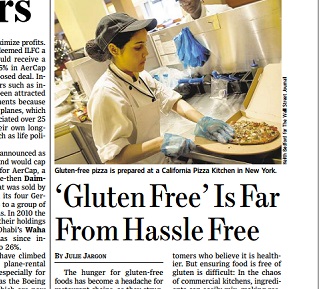 The Wall Street Journal says many restaurants are having a tough time handling the rising number of gluten-free requests from customers. In a busy kitchen atmosphere, it’s difficult to make sure that ingredients haven’t mixed. Some restaurants are labeling their food as “Gluten Friendly” rather than Gluten-Free to cover themselves in case their foods exceed new FDA guidelines for Gluten-Free labeling.