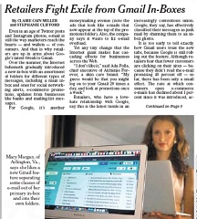 Now that Gmail has tabs that separate regular email from promotional and social network emails, retailers are feeling like their marketing messages are being ignored. The New York Times says some retailers feel their emails are being banished to an “inbox ghetto.” Researchers found the rate at which users open promotional emails has dropped only 1% since the changes were introduced. But users are waiting longer to open promo emails, which is an issue for flash sale sites.
