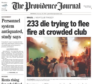 This weekend’s fire at a Brazilian nightclub, which claimed the lives of 231 people, prompted painful memories for the survivors of a similar tragedy back in 2003 at Rhode Island nightclub The Station. The Providence Journal says both fires started the same way, after fireworks were set off inside. That combination has been the cause of several deadly nightclub fires in the intervening years.