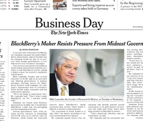 The New York Times’ story on the BlackBerry encryption controversy is excellent. Research in Motion says it won’t budge despite efforts by the UAE and Saudi Arabia to get the company to reveal the content of messages passing through its network. RIM says that its top-notch security is why it’s been so successful in winning the trust of corporations and law enforcement agencies. The UAE announced it will start blocking BlackBerry messages this fall; Saudi Arabia is planning a similar measure for later this month.