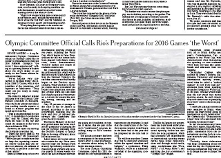 The New York Times says there are growing doubts about Rio de Janeiro’s ability to be ready for the 2016 Olympics. A top Olympic Committee official called Rio’s preparations the worst he has ever seen. Construction of a major venue has barely begun and polluted waterways pose a challenge for events like sailing, rowing and triathlon. But officials say there is no plan to move the Olympics to another city.