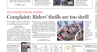You’re supposed to scream on a roller coaster. That’s not an argument that worked on the neighbors of Great America, says the San Jose Mercury News. The amusement park was forced to close down its latest ride the Gold Striker because riders were emitting such “blood-curdling screams” that local businesses began to complain. The ride is being retrofitted with a tunnel to muffle the screams and hopes to open in time for the 4th of July.