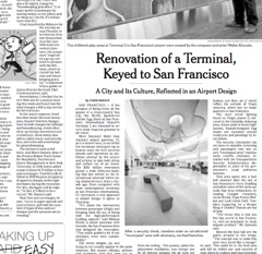 The New York Times has a preview of the newly remodeled San Francisco airport, which opens its doors on Thursday. Conceding that the “words delight, joy and flying do not usually appear in the same sentence,” the Times says the renovation put equal emphasis on redefining travel as an enjoyable pastime and lessening the building’s environmental impact. Electric cars get preferential parking; reclaimed water is pumped through the restrooms and instead of McDonalds, several of the Bay Area’s finest restaurants have set up shop offering locally grown food.