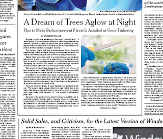 There’s a cool story in the New York Times about making trees that glow in the dark. A group of scientists and entrepreneurs have started the project in hopes that one day glowing trees and shrubs could replace electric street lamps. The project is garnering a lot of attention not only for its ambitious end goal, but also for the DIY way it’s being run—by hobbyist scientists around the country, instead of in an academic or corporate lab.