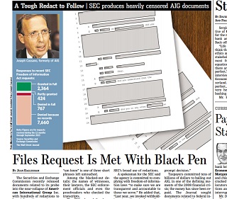When the Wall Street Journal requested records from the Securities and Exchange Commission’s investigation into AIG’s near-collapse, the SEC complied by sending back documents that were so redacted, they offered few clues about what the probe uncovered and why it was closed. On one page, there were just four words remaining: “okay,” “by,” “in” and “did.”