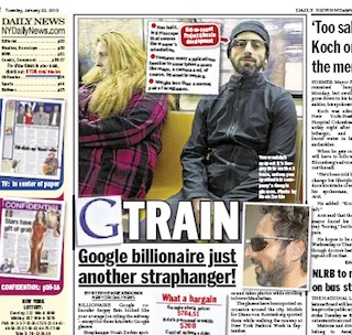 “I just had a brief conversation with the most powerful guy in the world. On the downtown 3 train,” read the tweet by Noah Zerkin. He was talking about Sergey Brin, who looked like everyone else as he rode the subway in New York City on Sunday evening—except for the $1,500 Google glasses he had on, which provide real-time data for users. The Daily News notes that Brin could take about 9 billion subway rides with his net worth.