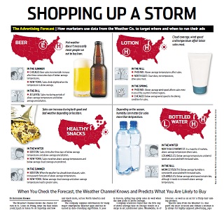 The Weather Channel is predicting more than just when the next storm will roll in. The Wall Street Journal says the cable network is forecasting what you will buy by analyzing when, where and how often you check the weather. They use that information to appeal to advertisers. So the next time you check the weather on a humid day, you might be greeted by an ad for a frizzy hair treatment product.