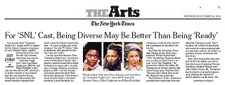 Jason Zinoman of the New York Times writes that it’s time for Saturday Night Live to hire another black woman. In its four decades, SNL has had just three full-time, black female cast members. Zinoman writes that considering the topics SNL covers, having a black woman on the cast is not just a question of fairness, but of art.