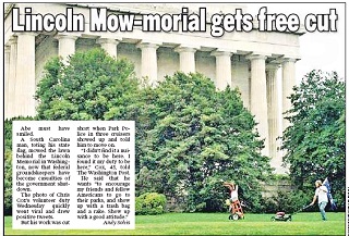 With National Park Service workers furloughed because of the government shutdown, Chris Cox decided he would take care of mowing the lawn outside the Lincoln Memorial. He says he just wanted it to look nice for this weekend’s Million Vet March. The New York Post says despite his gesture, police eventually told him to leave.