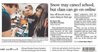 The Chicago Tribune says all the snow we’ve been getting this winter hasn’t slowed down some high schools. Some students and teachers have improvised with digital lessons completed on computers or tablets. Others have held virtual classroom discussions. The Tribune says the day may not be far off when a snow day no longer means no class, even if the school is closed.