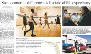 The Washington Post reports on a big study this morning tying wealth and longevity together. The authors studied two adjacent counties in Florida and found that the more prosperous of the two had higher life expectancies—four years for women, six for men—than their less affluent neighbors. Researchers say their findings illustrate a grim truth: even as life expectancy increases around the country, it’s a change seen mostly by those at the top of the income ladder.