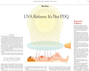 Aren’t we glad we don’t live in 1944 when the only sunscreen was something called red vet pet, a red greasy ointment used by veterinarians? The New York Times has an interesting look at the history of sunscreen and the many evolutions it has gone through, the latest being the FDA’s proposal to rate sunscreens on their ability to black UVA rays, which SPF doesn’t cover.