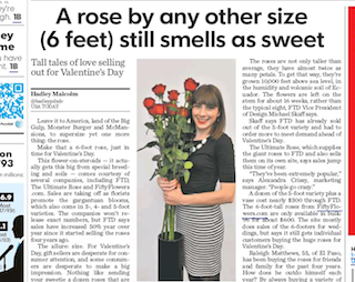 There’s giving long-stemmed roses to your sweetheart on Valentine’s Day and then there’s giving really long-stemmed roses. USA Today says the hottest gift this year is the six-foot rose. The “flower-on-steroids” grow to its enormous size because of special breeding and soil and is also available in two-foot, three-foot and five-foot varieties. They are not cheap, however. Buying a dozen of the five-footers will set you back about $300.