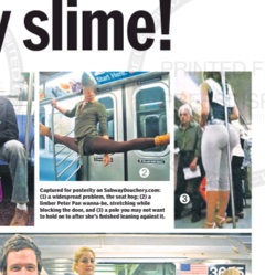 The photo is from a website called Subway Douchery.com. Here’s a link to original butt-on-pole post, with the many, many comments and clever asides it inspired.