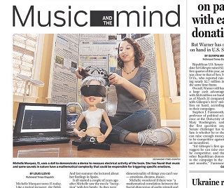 The Richmond Times-Dispatch profiles 15-year-old Michelle Marquez, a remarkable young woman who has discovered the mathematical structure of sound that triggers emotions. She began working on this concept as a 12-year-old after seeing the movie, “Inception.” Her research into how sounds affect our emotions could have applications for attention disorder and PTSD treatment.