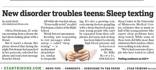 Teenagers are so connected to their cellphones - they’re even sending messages in their sleep. The Minneapolis Star-Tribune says “sleep texting” is a real phenomenon among teens. Similar to sleep walking, sleep texting is a growing concern among doctors dealing with already sleep deprived teenagers. Some doctors say it’s more a sign of teens’ over-reliance on their phones.