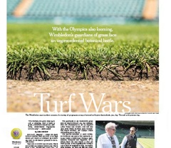 It’s a tough year to be the grass at Wimbledon. The famed tourney begins Monday and then the Olympic tennis tournament starts a month later, on July 28. In preparation, the New York Times says a team from the Sports Turf Research Institute has descended on the grounds.  And in case of an emergency, they have an entire replica of Center Court growing on a plot 200 miles north of London.