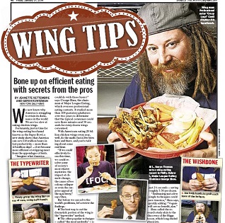 There may be more chicken wings consumed this weekend than at any other time of the year. So the New York Daily News has some advice from expert eaters on the best way to eat wings quickly and efficiently. Use the “typewriter” method for the drumstick, spinning the wing and moving left-to-right. For the upper portion of the wing - you’ll want to try the wishbone method. Put the whole wing in your mouth, separating the bones as you pull them out.