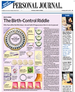 Birth control pills have been around for 50 years, yet almost half of the pregnancies in this country are still unplanned. The Wall Street Journal says the numbers are so high because many young people are in “the fog zone.” That means their beliefs - (I don’t want to get pregnant now) - don’t match their behaviors - (But I’m not going to use contraception.) Experts say this could be avoided if more young women used IUDs. The Journal has a useful rundown of what is on the market, in terms of birth control, and what works the best.