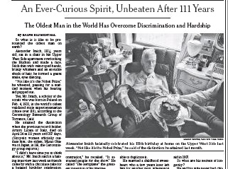 The thing about being named “The Oldest Man on Earth” is you only get the title when the guy ahead of you dies. That’s the situation New Yorker Alexander Imich has found himself in. At 111 1/4 years, he is now the oldest man on Earth. The New York Times says upon hearing the news he said, “Not like it’s the Nobel Prize.” To put his age in perspective, Imich was 10 months old when the Wright Brothers made their famous first flight.