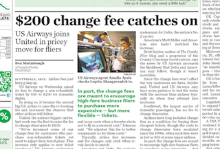 There’s a disturbing trend rippling through the airline industry, says USA Today. More and more carriers are raising the fee for changing a ticket to $200 . US Airways made the switch yesterday, echoing a recent move by United. Delta and American have not yet raised their $150 fees but experts say not to be surprised if they do.