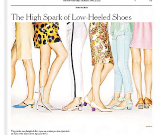 Women’s feet everywhere will breathe a sigh of relief to read that the New York Times has declared low-heeled shoes the “it” style of the season. Specifically, the Times is talking about low block heels, a trend that, bolstered by the return of cardigans, costume jewelry, and framed handbags, it christens as the “triumph of frump.” Frumpy or not, the heels shown at spring fashion shows were “miraculously wearable” but still had “enough height to give your bottom a little lift.”