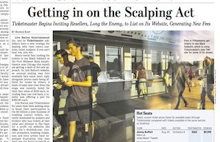 If you can’t beat ‘em, join ‘em seems to be the new slogan over at Ticketmaster. The Wall Street Journal says a new micro-site called TM+ allows scalpers to list their tickets on Ticketmaster’s primary ticketing site so customers can sort through everything that’s available. The Journal says for years, the company has wanted to get into the $4-billion-a-year ticket resale marketplace, and TM+ marks its first step. The article notes that now Ticketmaster can collect three sets of fees on a single ticket.